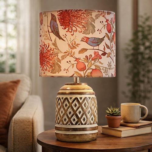 Decorcity Vintage Rustic Wooden Table Lamp for Living Room & Bedroom | Handcrafted Teal Distressed Base with Fabric Drum Shade | Bedside Nightstand Lamp for Home Décor (Bird) -